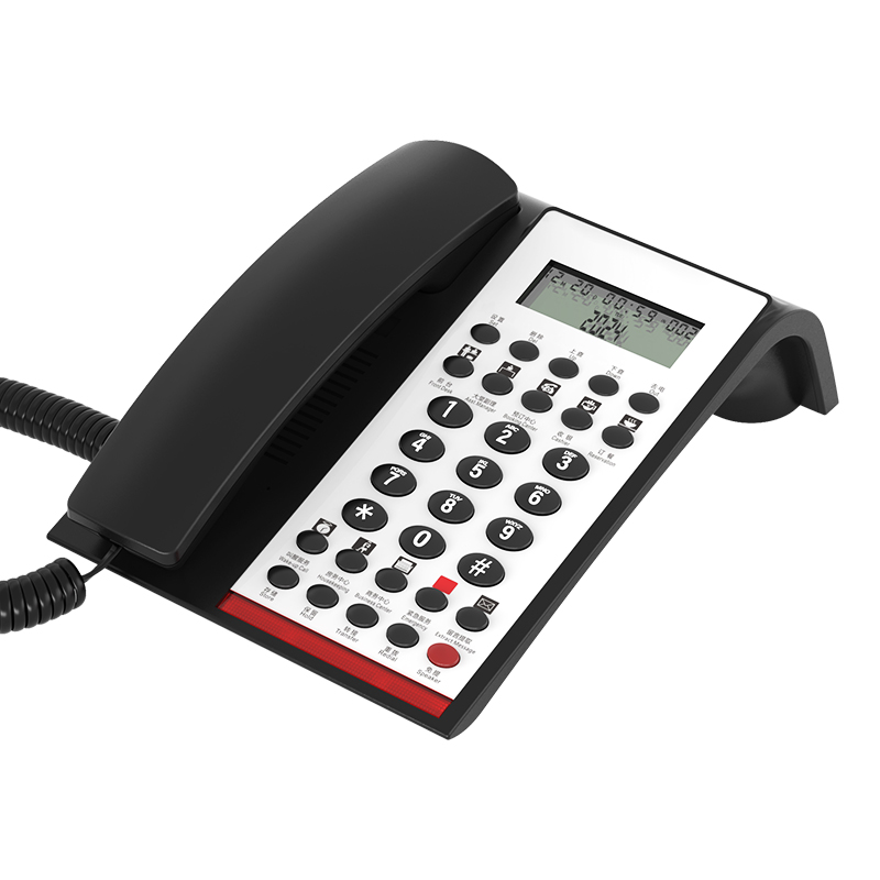 Hotel telephone refers to a high-quality telephone specially customized for hotels, which is easy to use, professionally tailored for hotels, and does not require any reference materials. It allows guests to make phone calls more easily and conveniently, and also enables them to contact corresponding departments such as front desk/room service center/catering department, etc.